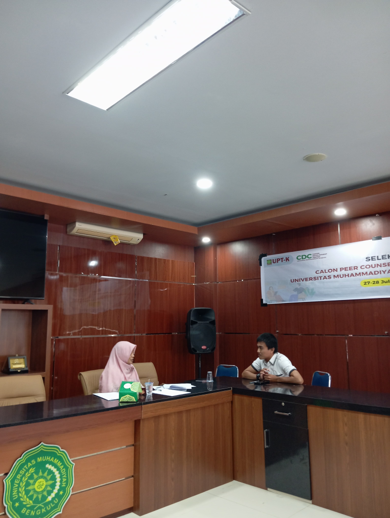 UPT Kemahasiswaan mengadakan seleksi peer counselor Mahasiswa yang dibuka langsung oleh Kepala UPT Kemahasiswaan UM Bengkulu Bapak Rasman, M. I.Kom pada 27 Juli 2024 di ruang rapat rektorat UM Bengkulu. Untuk kegiatan ini akan berlangsung selama dua hari dari tanggal 27-28 Juli 2024.