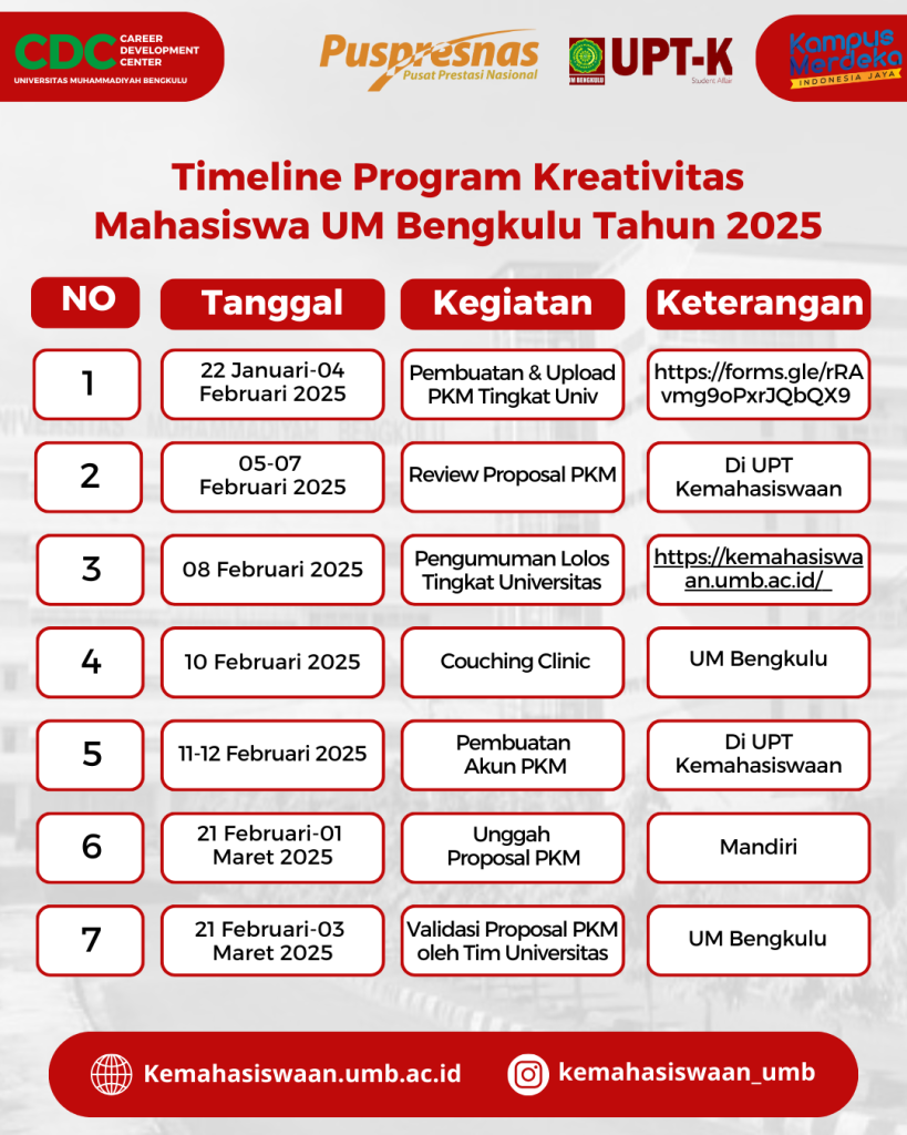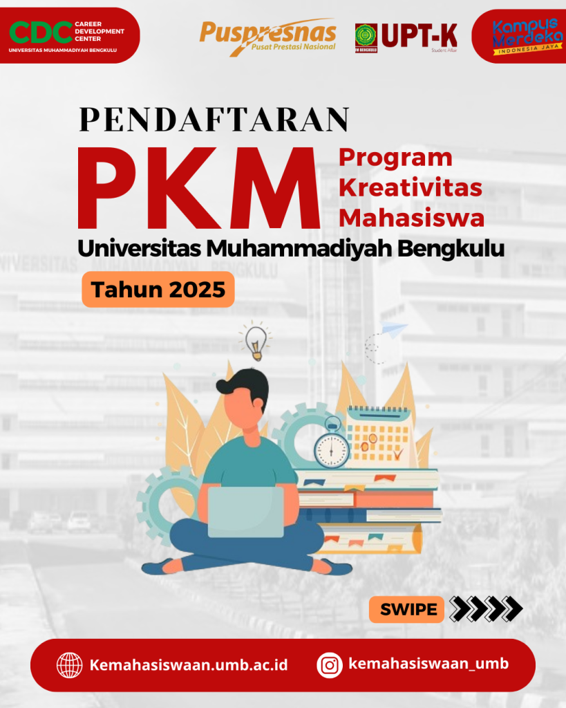 “Yuk, bergabunglah dan menjadi mahasiswa kreatif dalam kegiatan Pekan Kreatifitas Mahasiswa UM Bengkulu Tahun 2025”